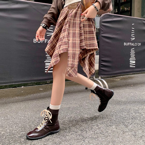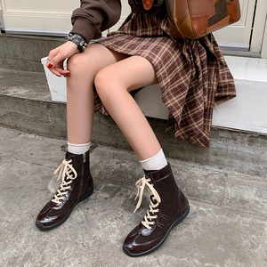 很洋气舒适运动马丁靴网红拳击靴2025低跟拼接真皮休闲系带短靴女