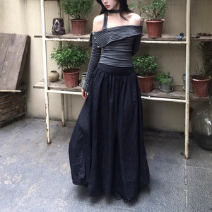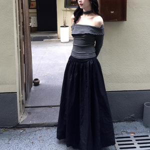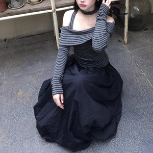 MENGXIANG 美式辣妹设计感一字肩长袖T恤女秋季新款修身露肩上衣