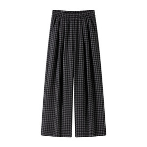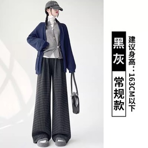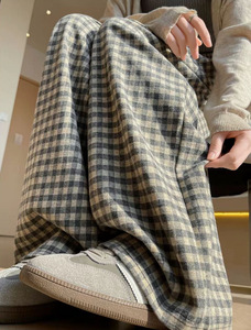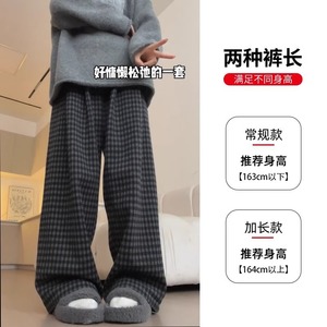 复古毛呢格子裤女秋冬5新高腰保暖裤子高级感宽松百搭直筒阔腿裤