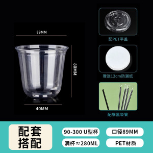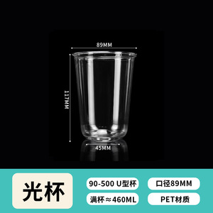 一次性U型咖啡杯带盖PET波波杯加厚高透明冷饮奶茶杯外卖打包商用