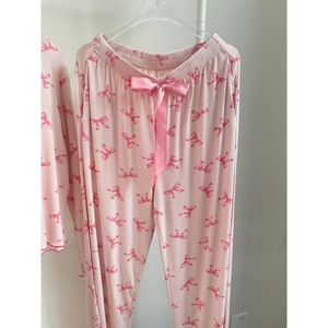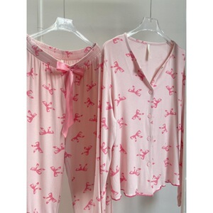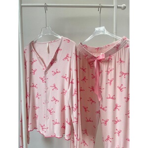 韩系纯欲甜美粉色蝴蝶结棉睡衣女春夏季新款长袖长裤家居服套装