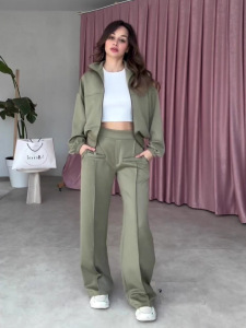 跨境亚马逊时尚女装2025秋季新款翻领开衫外套时尚设计感长裤套装