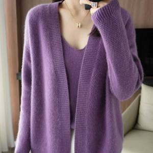 2025新款开衫女士春秋季新款v领针织两件套毛衣宽松慵懒外套时尚