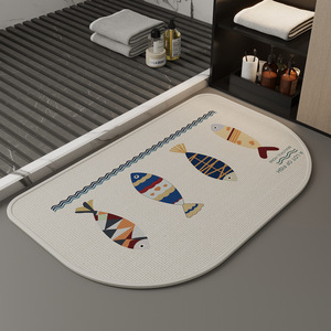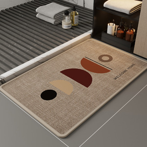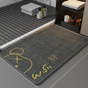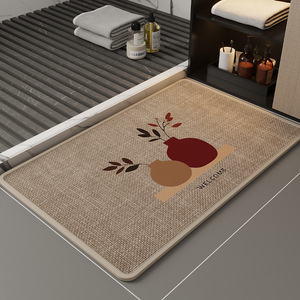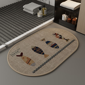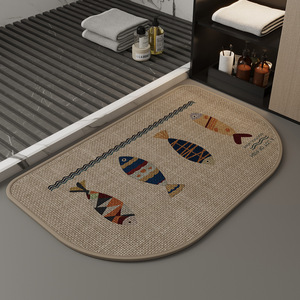 浴室垫可爱卡通吸水耐脏脚垫家用卫生间易打理防滑亚麻编织印花垫
