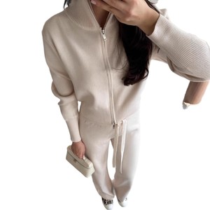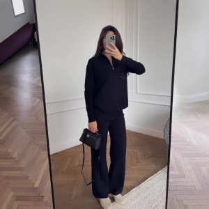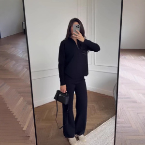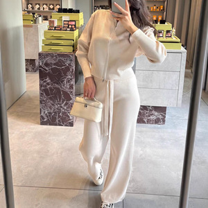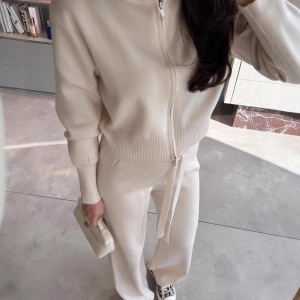 欧美女装跨境外贸时尚2025秋季新款圆领拉链开衫外套长裤休闲针织