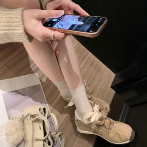 羊皮版~芭蕾风百搭真皮厚底德训鞋女百搭休闲运动板鞋绑带阿甘鞋