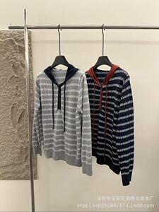 琪镌绘制条纹连帽打底衫女秋季款宽松时尚显瘦减龄休闲毛衣98199