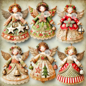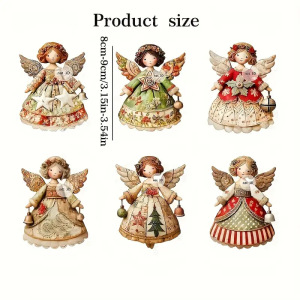 跨境新款手工复古木制天使挂饰木制平面装饰圣诞树装饰挂牌花卉天