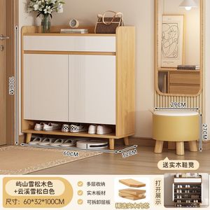 入户门实木鞋柜家用门口大容量鞋柜新款室内玄关柜收纳储物柜鞋架