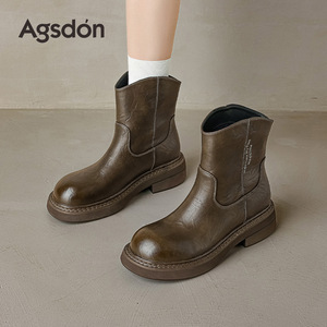 奥古狮登马丁靴女2025年新款秋季棕色英伦靴子美拉德精致时装短靴