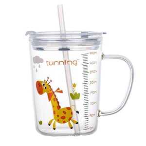 网红刻度量杯儿童卡通玻璃杯家用创意水杯宝宝早餐冲泡牛奶杯