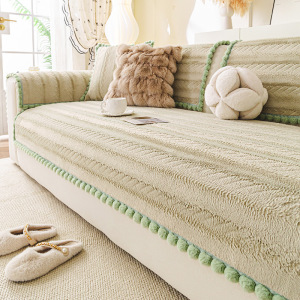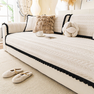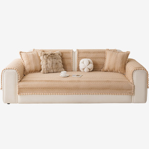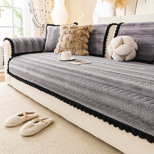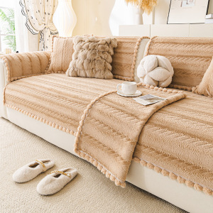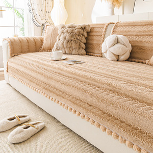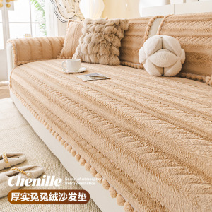 高级感兔毛绒秋冬季加厚保暖沙发垫2025新款固定防滑坐垫直排盖布
