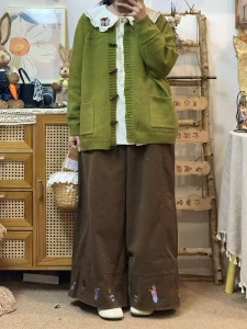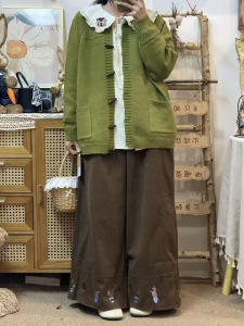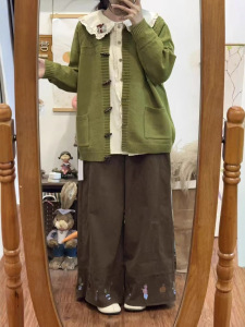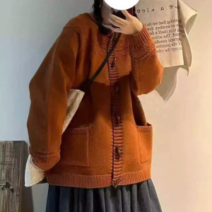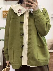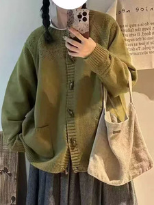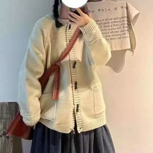 法式花边镂空慵懒风针织长袖毛衣秋季新款圆领单排扣甜美宽松上衣