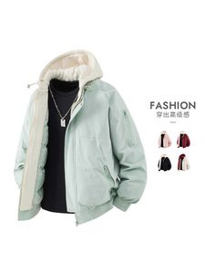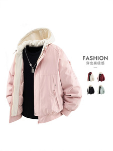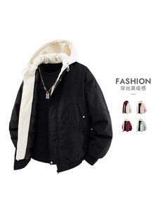 冬季新款假两件棉衣男宽松棉服外套男情侣同款连帽时尚百搭面包服