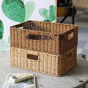 编织收纳筐家用橱柜茶几整理筐衣服零食收纳箱仿藤编篮欧式收纳