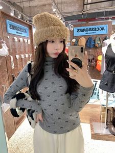 半高领德绒内搭打底修身上衣女秋冬季新款蝴蝶结碎花长袖T恤衫女