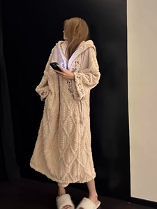 韩系慵懒风加厚保暖半边绒睡袍女2025秋冬新款甜美温柔家居服套装