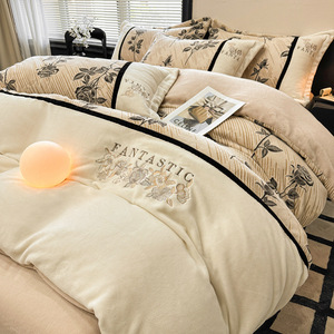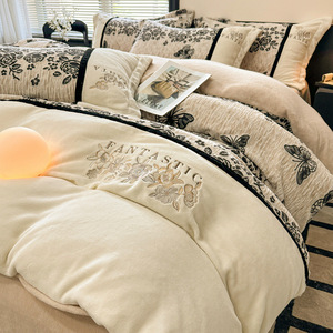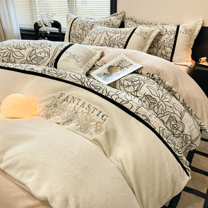 新款牛奶绒四件套加厚牛奶绒刺绣拼接立体雕花绒被套床单床上用品
