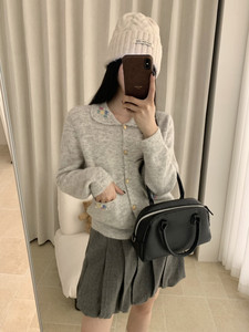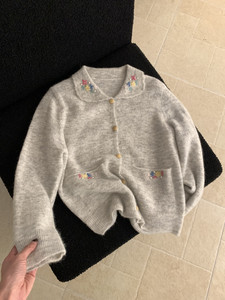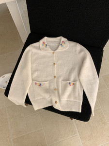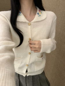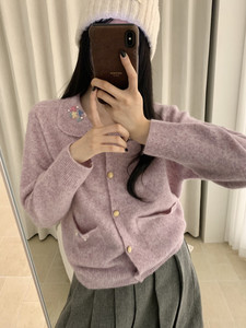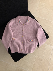 之言25秋冬女装韩系钩花钉珠木扣羊毛衫高级感羊驼绒针织开衫毛衣