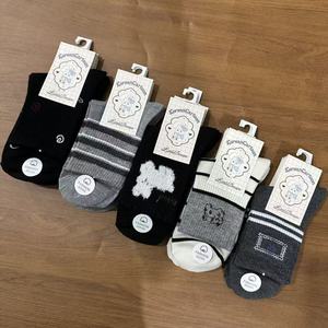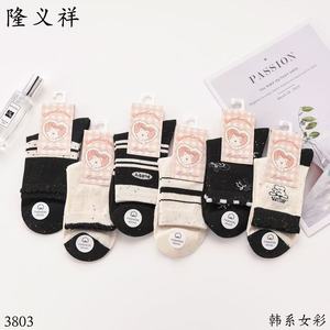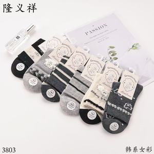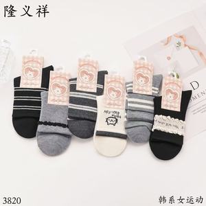 隆义祥女士运动袜休闲袜 秋冬新款格雷系灰色系百搭条纹卡通棉袜
