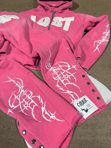 美式复古宽松潮流贴布绣个性设计感钉珠连帽衫嘻哈风男女同款卫衣