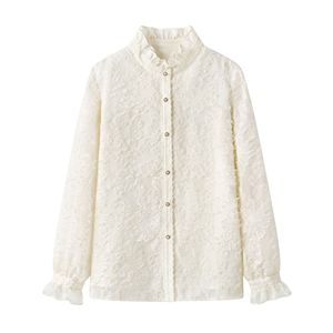 35LL-1403木耳边小立领衬衫2025秋新款法式流苏剪花别致通勤上衣