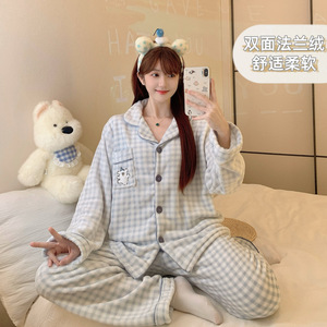 法兰绒睡衣女款秋冬季可爱小狗卡通加厚保暖长袖套装家居服可外穿