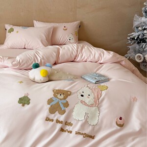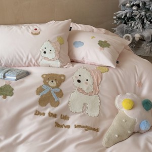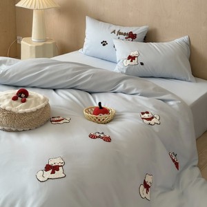 100S高支纯棉磨毛四件套可爱卡通毛巾绣保暖被套加厚全棉床单床笠
