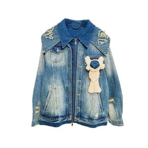 虎门高端女装秋季新款法式百搭卡通立体玩偶春秋夹克牛仔外套女