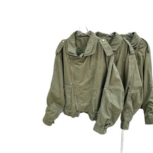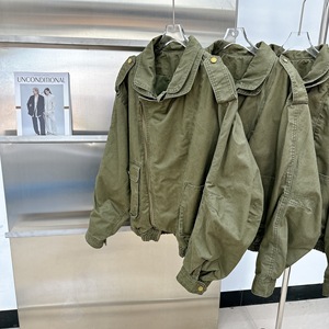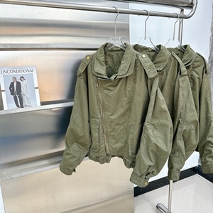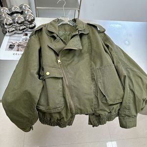 2025秋冬新款韩版宽松显瘦翻领军绿牛仔外套女休闲百搭帅夹克上衣