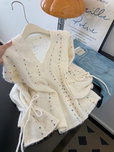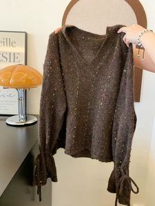 广州十三行高货爆款~彩色V领绑带针织衫女秋冬款慵懒软糯宽松毛衣