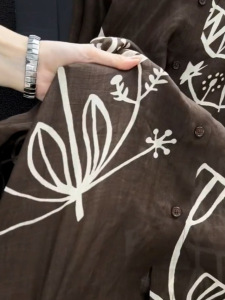 法式小资上衣早秋女装2025新款高级感巨好看咖色印花长袖衬衫外套