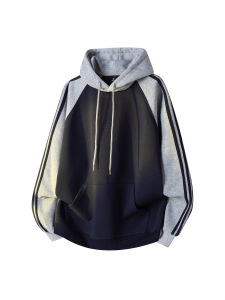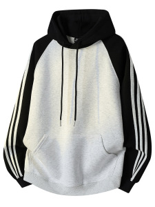 秋季休闲宽松上衣三条杠插肩360g连帽卫衣男女款潮牌保暖卫衣外套