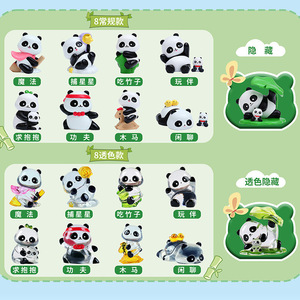 胖达川味馆盲盒熊猫崽崽系列摆件卡通动漫树脂桌面潮玩小礼品批发