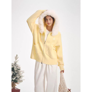 美拉德毛领连帽毛衣外套女2025秋冬新款时尚洋气显瘦针织开衫上衣