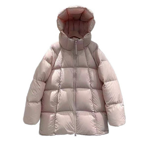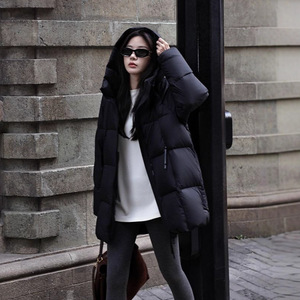 2025新款云朵泡芙羽绒服女中长款加厚连帽90白鸭绒面包服外套