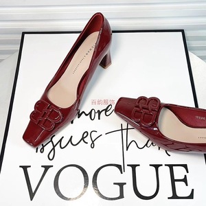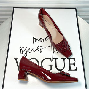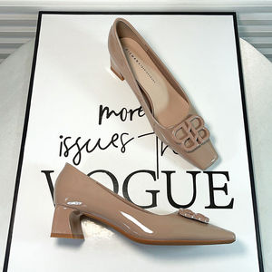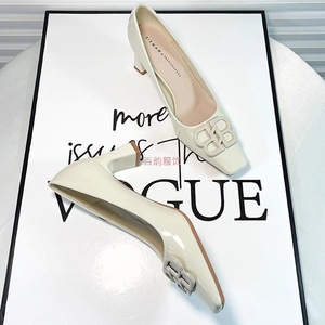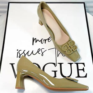 绿色仙女风气质时尚方头高跟鞋女粗跟2025年新款网红名媛漆皮单鞋