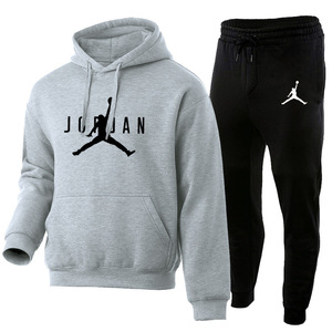 外贸现货跨境男卫衣连帽衫套装秋冬加绒潮印花外套运动衫加绒锁温