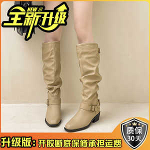 褶皱简约时装靴女2025秋冬新款复古百搭日常美拉德中筒靴骑士靴潮