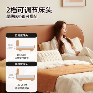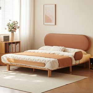 桐语特 超薄床头真皮全实木主卧小户型双人日式原木风榉木软包床