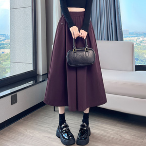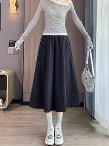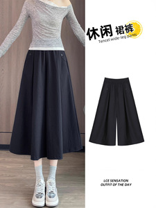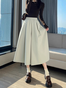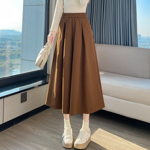 2025秋冬新款显瘦宽松双口袋松紧高腰小个子九分直筒裤裙子女7249
