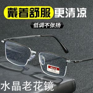名牌老花镜水晶男女款特级中老年老花眼镜防蓝光