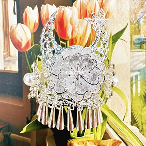 金属头冠贵州苗银双层吊坠大花冰箱贴