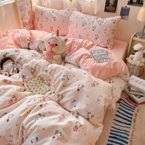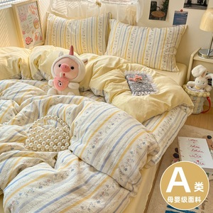A类母婴级水洗棉床上四件套小清新床单被套罩床笠学生宿舍三件套