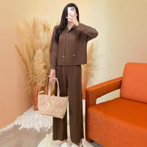 秋季连帽卫衣套装女宽松简约休闲时尚纯色单穿上衣高腰裤子两件套