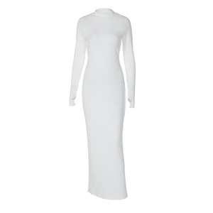 欧美风女装2025秋季新品时尚气质半高领修身显瘦纯色坑条连衣裙