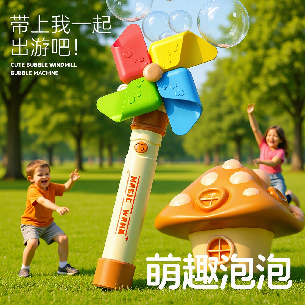 跨境新款大风车泡泡机儿童泡泡棒全自动吹泡泡360度手持式不漏液