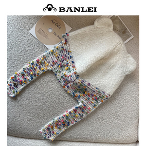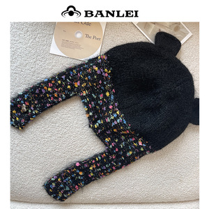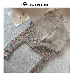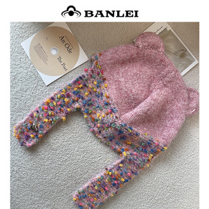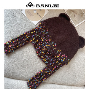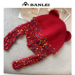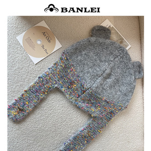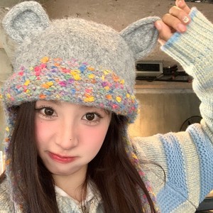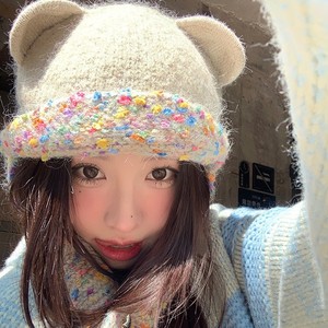 新款秋冬季小熊耳朵毛线帽子可爱糖果色学生保暖防风护耳毛线帽子