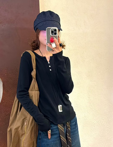 新品设计感小众V领内搭长袖上衣女T恤羊绒打底衫