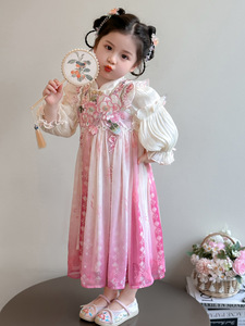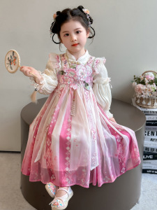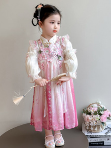 女童汉服连衣裙秋装2025新款女宝中秋国庆表演服幼儿园学生演出服
